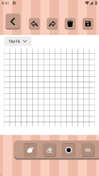 2、进入到像素画板中,呈现格子绘画,绘画工具免费去使用。