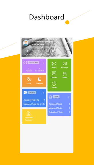 2、工时报告 员工可以按天、每周和任何定制的周期填写项目和非项目工时,并提交供审阅。