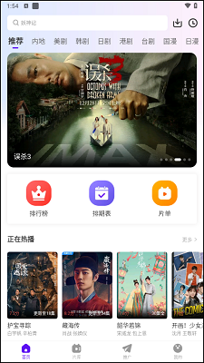 1、在软件首页,我们能够看到推荐、内地、美剧、韩剧、日剧、港剧等一系列板块。