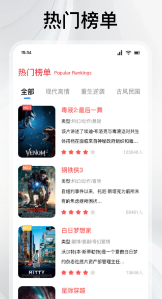 4、强大的搜索能力,可以在短时间内找到自己想要的电影和电视剧,操作变得容易。