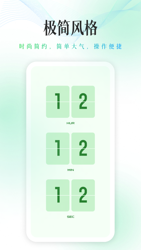 1、全屏翻页钟:经典的全屏动态翻页效果,极简的翻页钟,让时间体验独特迷人。
