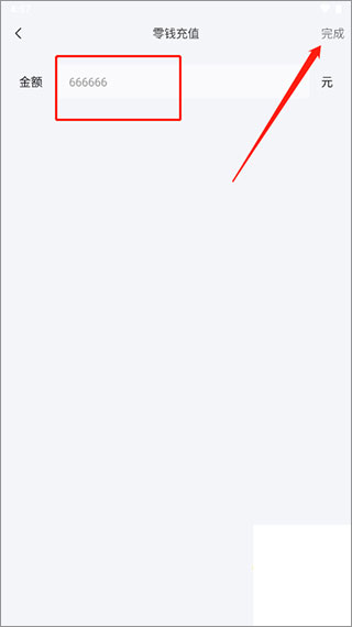 4、输入充值金额后,点击右上角“完成”。