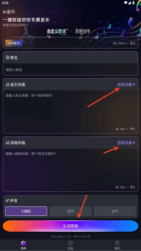 2.选择风格点击生成