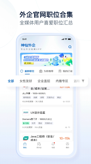 3、【职场互助社区】 真实的外企职场互助社区,汇聚HR 招聘信息、外企员工内推信息、找外企经验分享以及外企薪资爆料等。建立自己的职场朋友圈,与同行交流互动,获取求职建议和职场经验。
