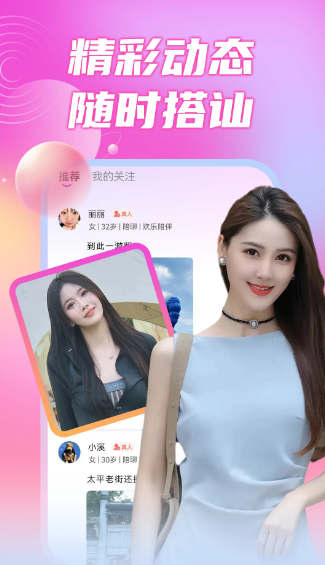 4、动态展示 有颜,有趣,有才能,在线交流,能看到资料照片,为好动态等,能愉快地聊天。
