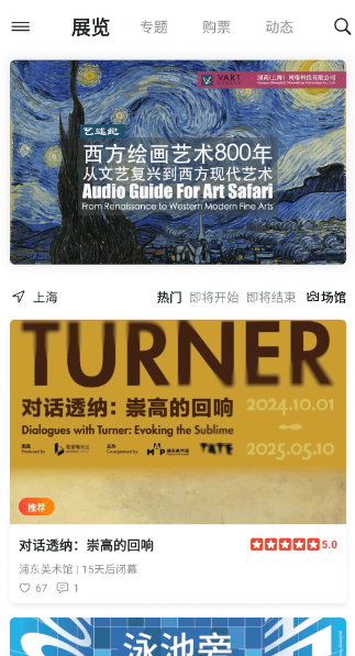 VART 能够推荐你最受欢迎的展览,最具价值的艺术信息。 还提供免费的双语语音导览,告别沉闷的解说,享受舒适的声线。 你还能够和150W的伙伴在这里探讨一场展览或一件作品,也可以静静得记录自己的感受。如果你不仅喜欢看,还喜欢创作,就能够在这里办一场线上展览,邀请自己的朋友一同观展、参展,享受策展人和艺术家的待遇。感兴趣的朋友不要错过下载VART。