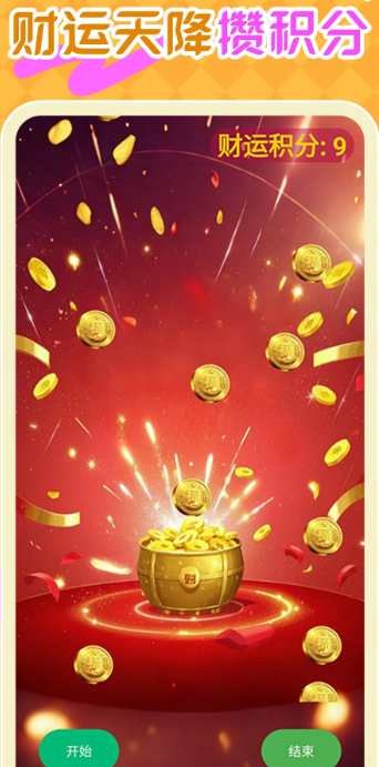 4、在“天降奇缘”功能中,点击“开始”,可以积累积分,获得更多积分奖励使用。