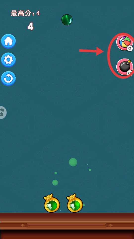 2、游戏内留意【最高分】与当前分数,熟悉左侧【返回】【设置】【重置】按钮及右侧道具功能。