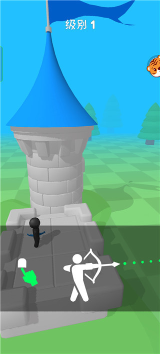 2、长按屏幕根据力度和方向沿着轨迹线射击敌人。