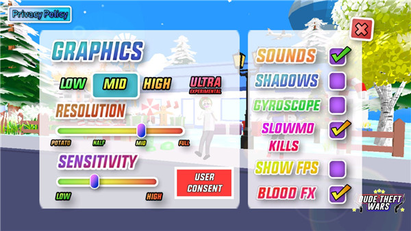 2、点击右下角的设置,可对游戏的图形、敏锐度、慢动作、阴影等进行设置;