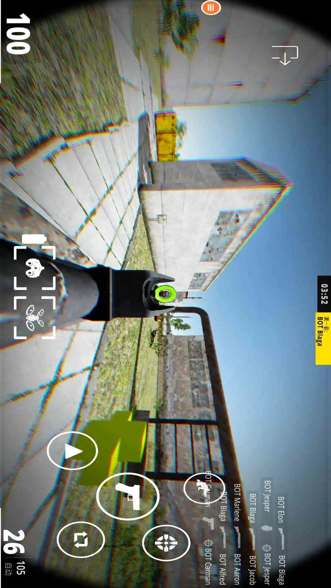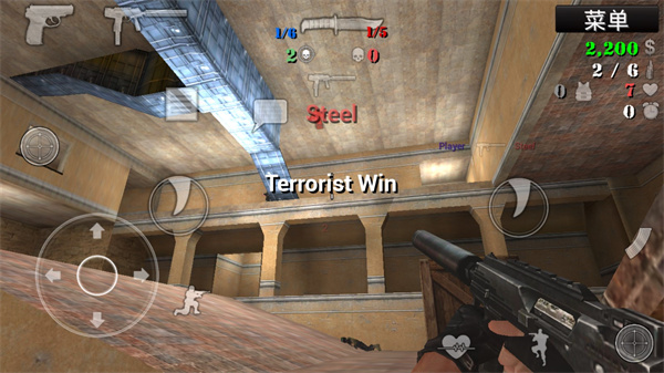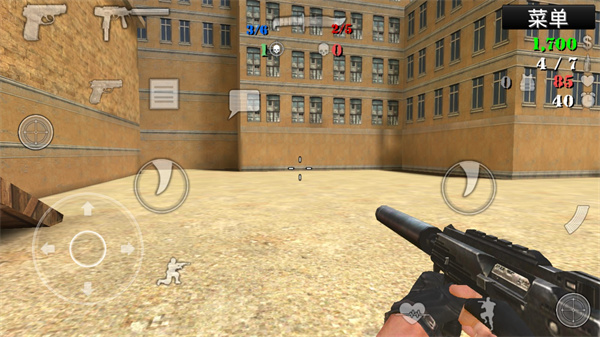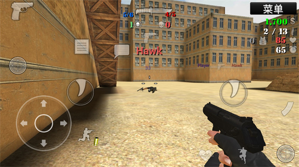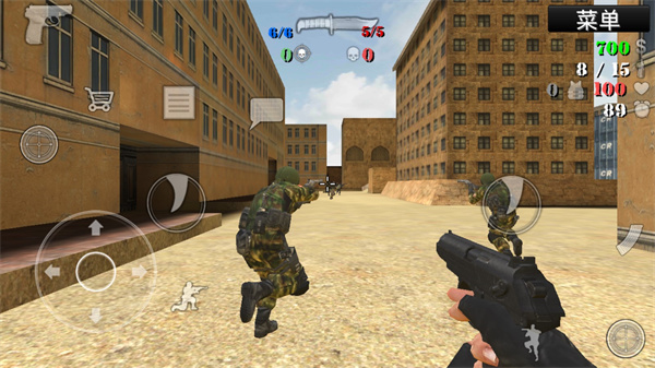 3、开始进入游戏,操作非常的简单,左边是方向和下蹲、购买等,右边则是攻击,其实两边都可以攻击,大家可以按照自己的喜好选择;