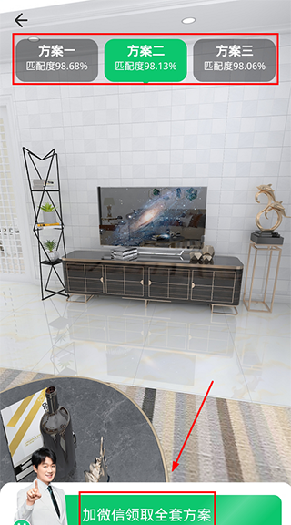 4、即可查看到为你生成的3款3D装修全景方案,如你满意,你可添加微信与工作人员进行沟通。
