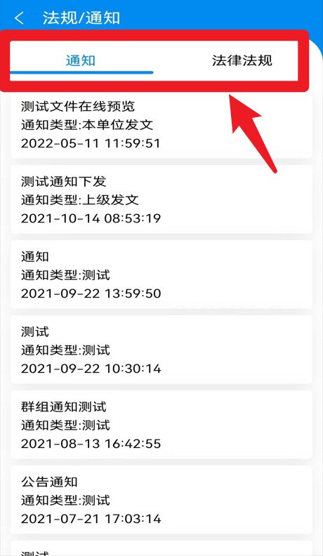 4、在“法规/通知”栏目中切换至“法律法规”标签,可查阅相关法律文件与政策通知。